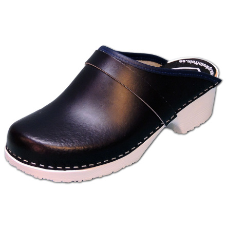 Classic clogs with soft black polyurethane sole, a veneer insole and a 5 cm heel. Upper in black real leather with a polyurethane coating.795 SEK