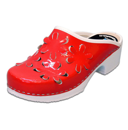 Classic clogs with soft white polyurethane sole, a veneer insole and a 5 cm heel. Upper in real polyurethane-coated leather decorated with a heart.795 SEK